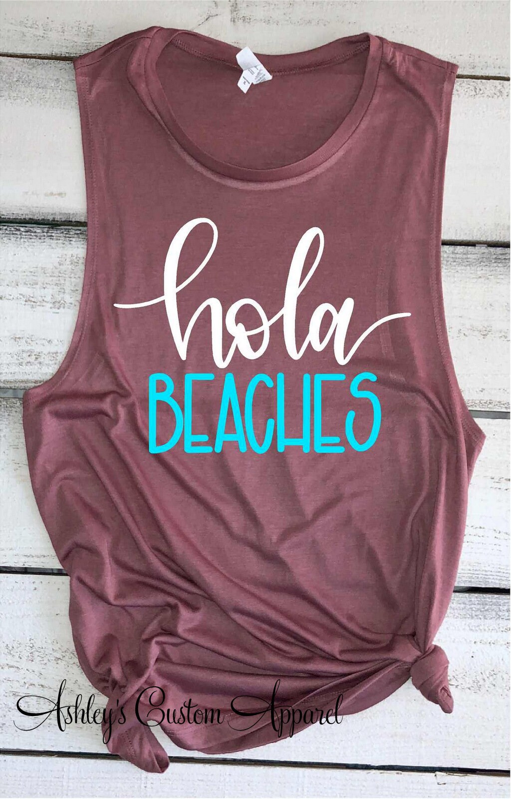 Funny Beach Shirts Hola Beaches Cute Beach Tank Tops Girls Etsy